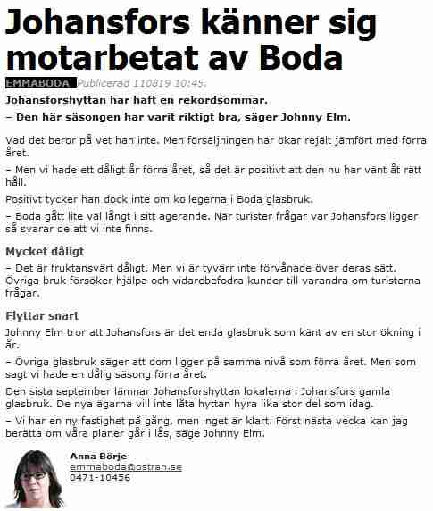 Johansfors känner sig motarbetat av Boda 2011-08-19