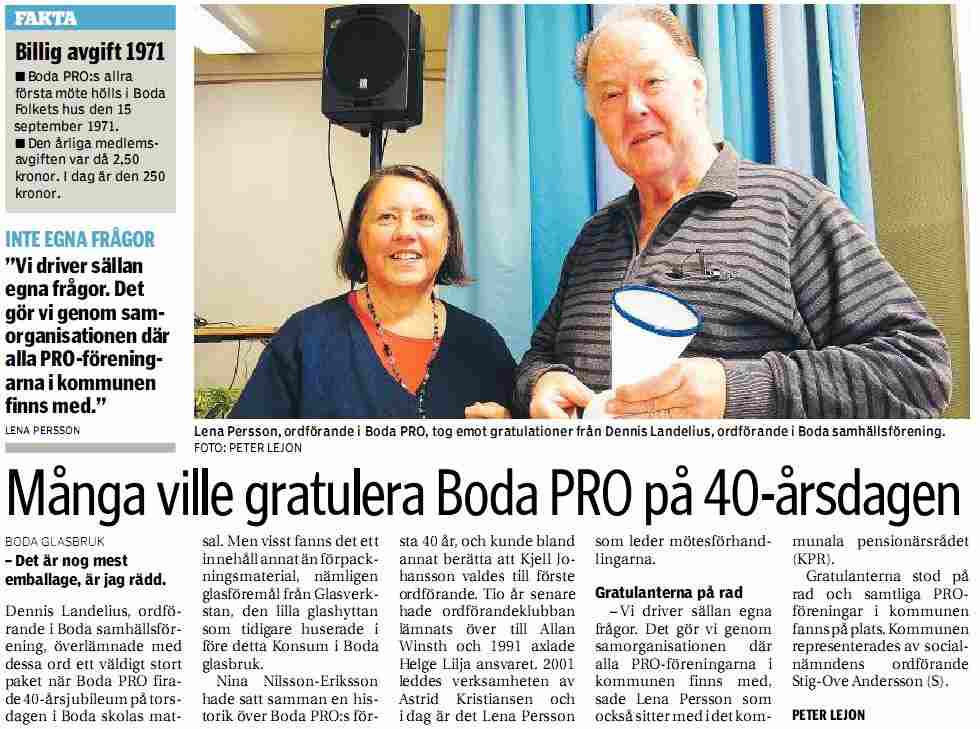 Många vill gratulera Boda PRO på 40-årdagen 2011-11-11